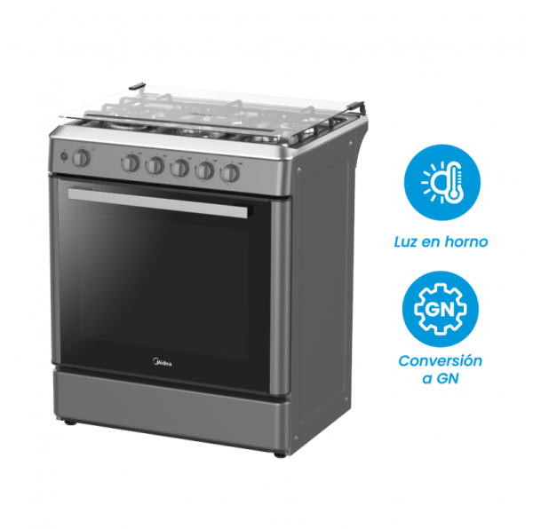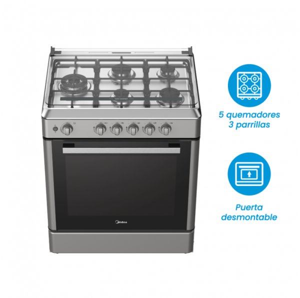 MGS30FS2LBAMB-PE – Cocina De Pie 1 Horno 5 Hornillas, Parrillas Hierro Fundido, Silver, 30″ Midea